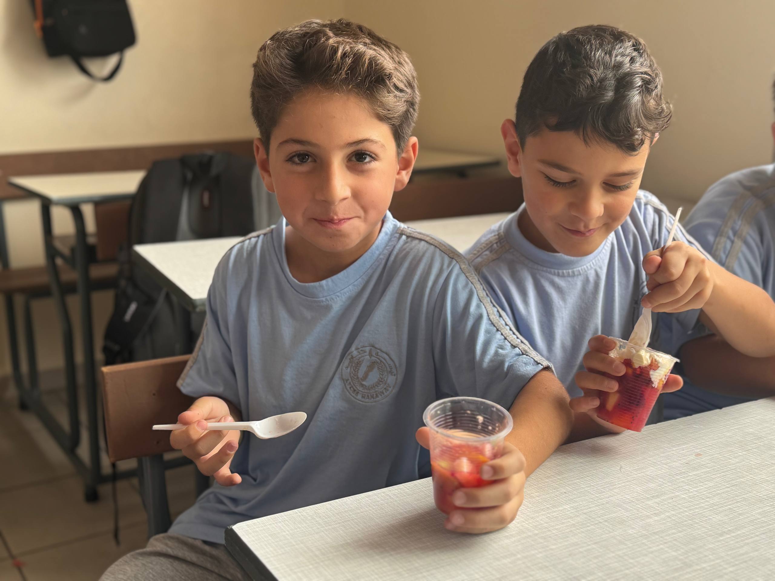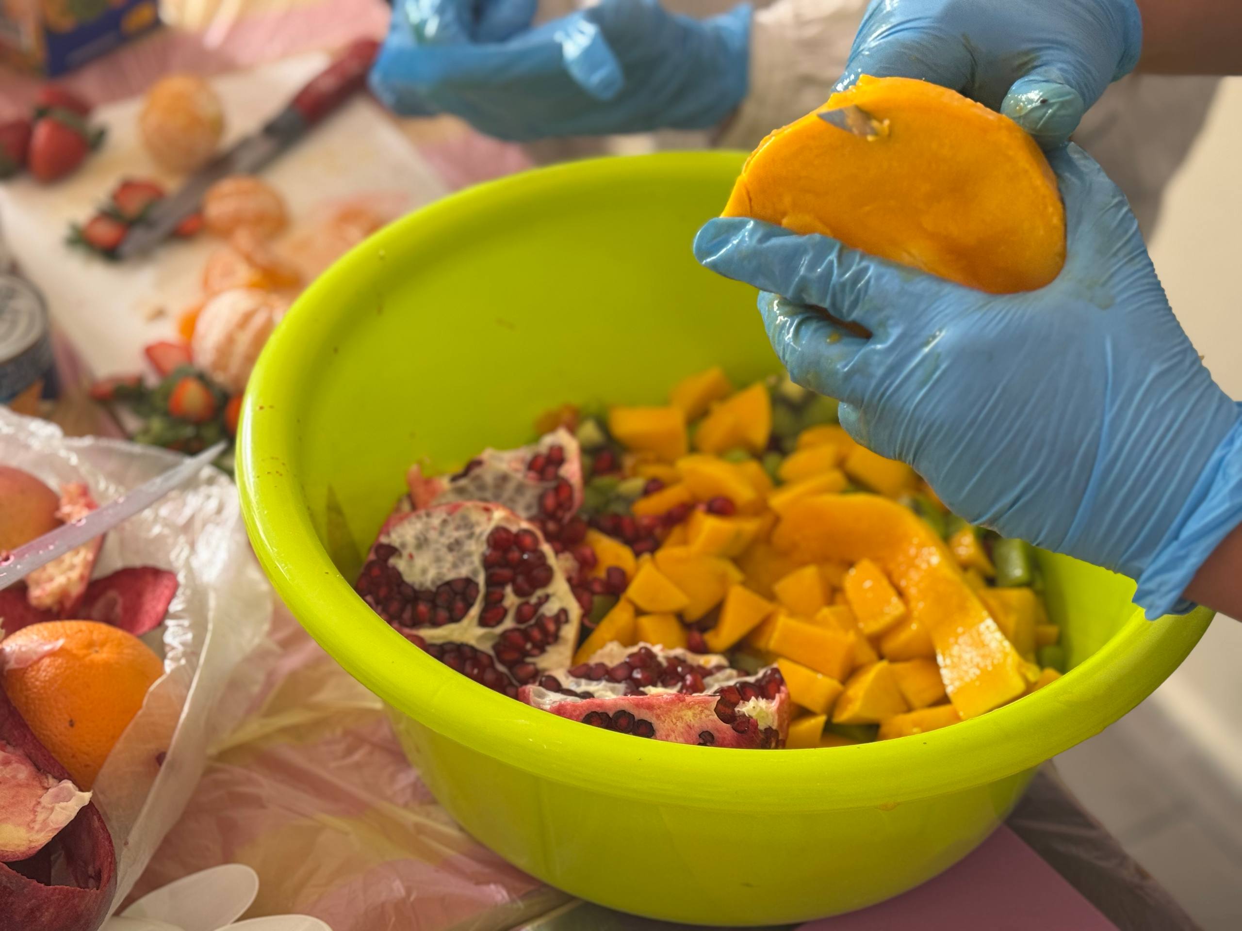 أحضَرَ كلّ تلميذ نوعًا من الفواكه، وعملوا معًا بروح التّعاون والمحبّة لإنجاز هذا النّشاط المفيد والممتع.